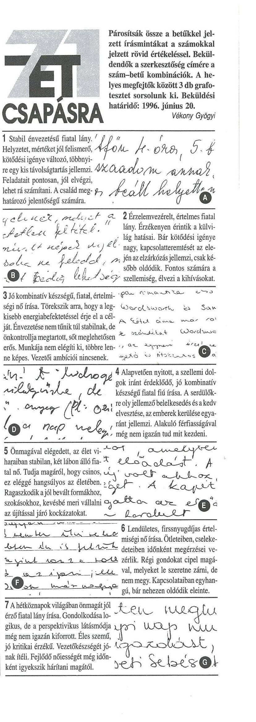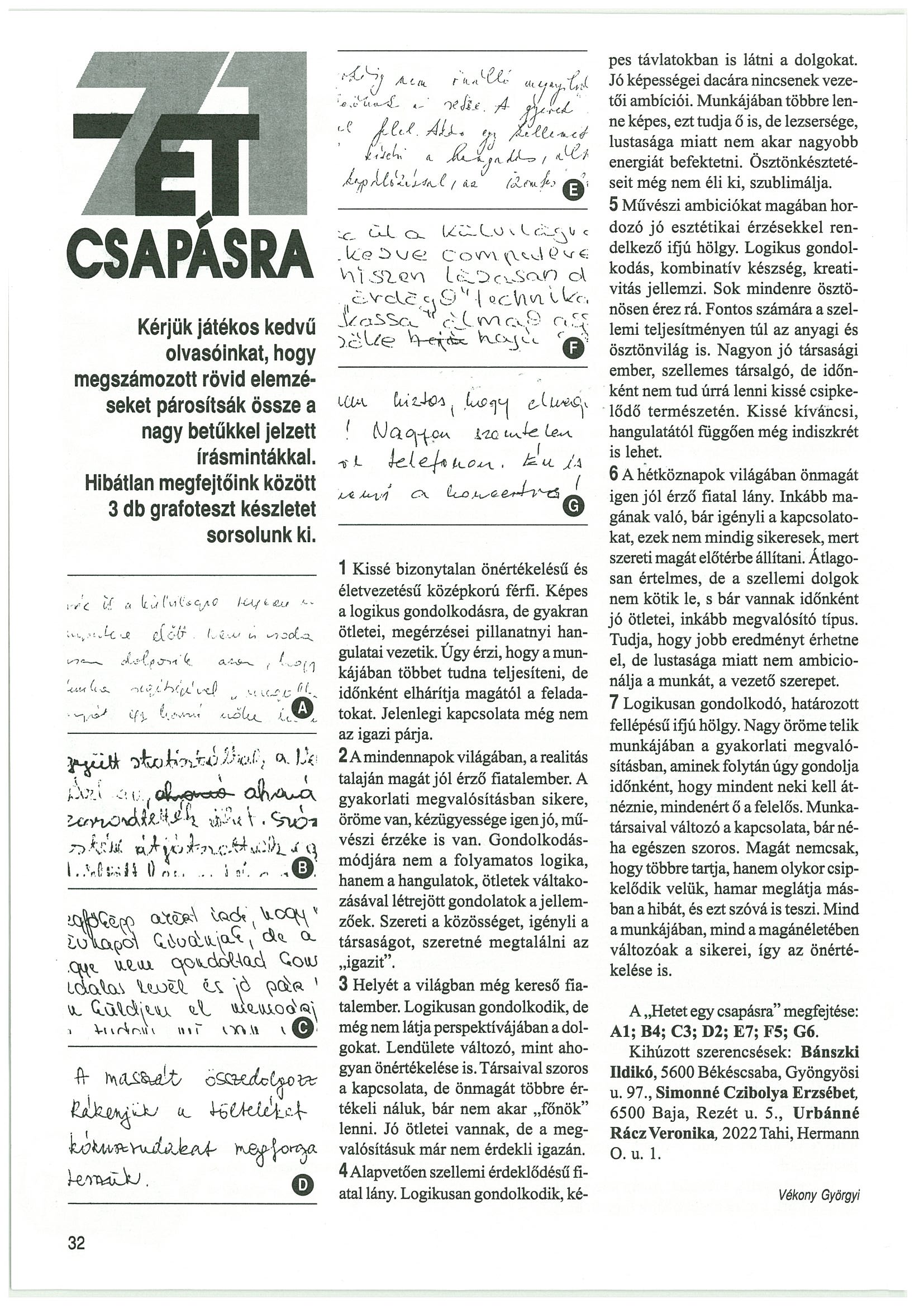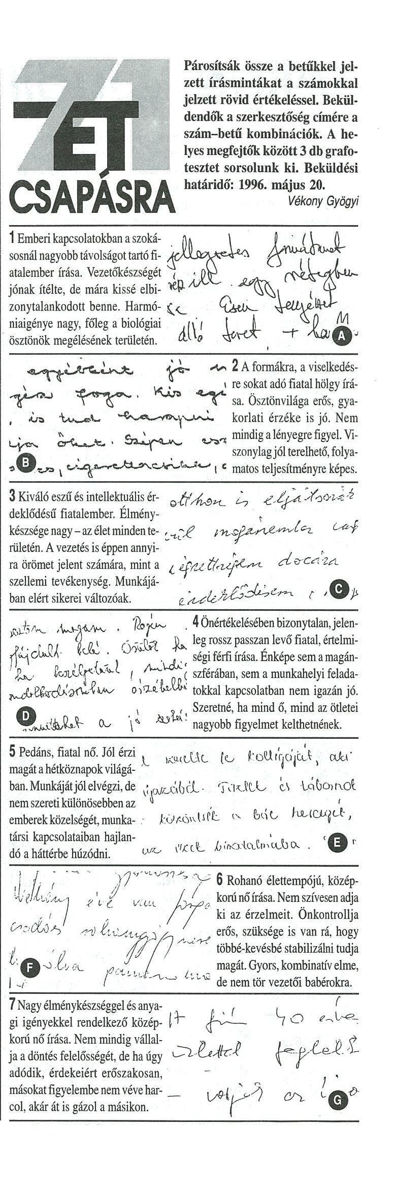 (Forrás:Grafológia folyóirat)